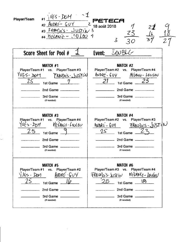 Tournoi de Peteca de Montréal 2018 Résultats – 18 août – Parc Lafontaine