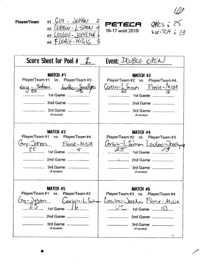 Tournoi de Peteca de Montréal 2019 Résultats – 16-17 août – Parc Lafontaine