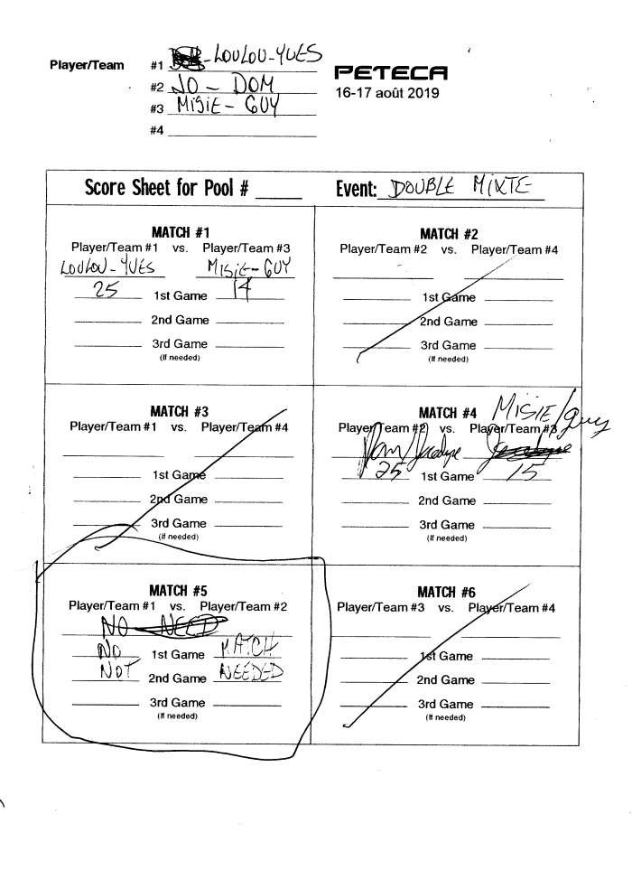 Évidemment, on ne pourrait passer sous silence que je suis probablement celui qui a eu le plus de plaisir à ce tournoi. En plus d’être entouré de tous ces amis, j’ai eu la chance de remporter la triple couronne soit le simple, le double et le mixte.