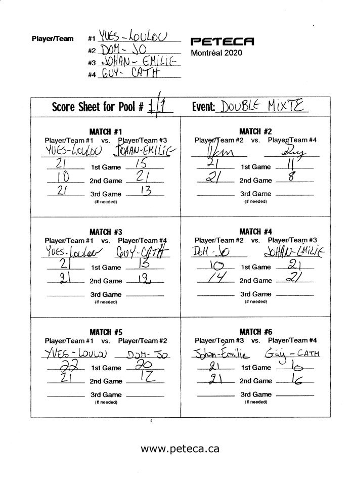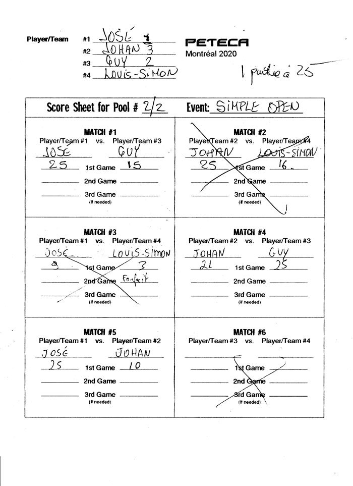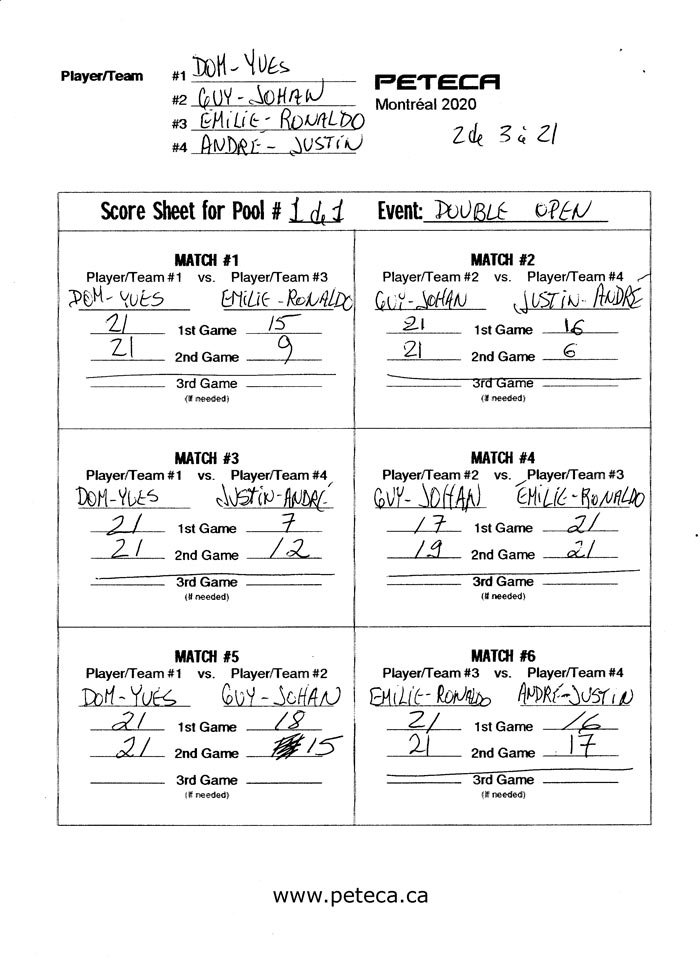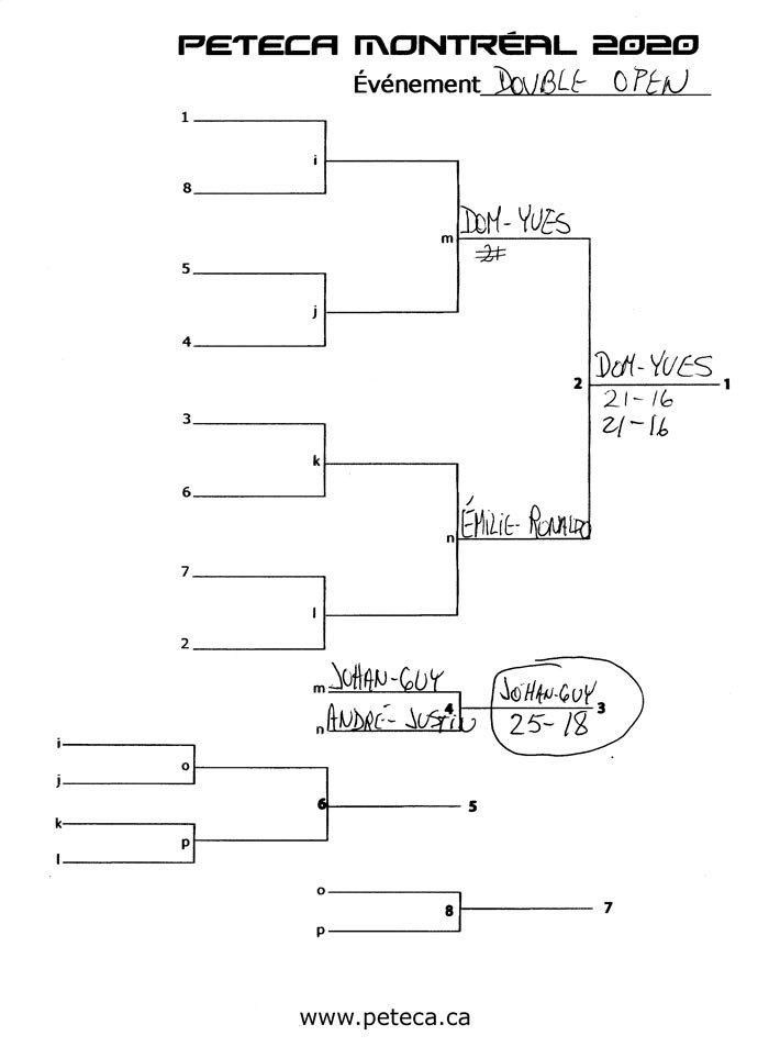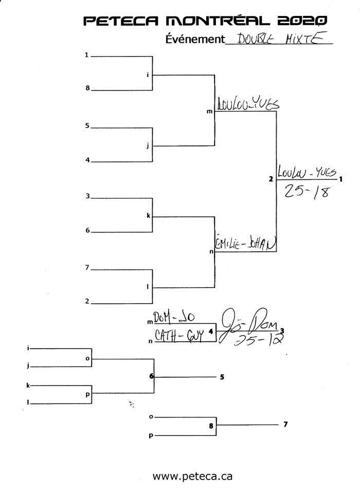 Tournoi de Peteca de Montréal 2020 – Résultats
